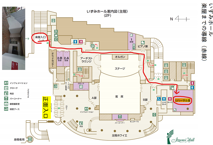 午前9:00 いずみホール楽屋口集合。法政OBの楽屋は「リハーサル室」です。